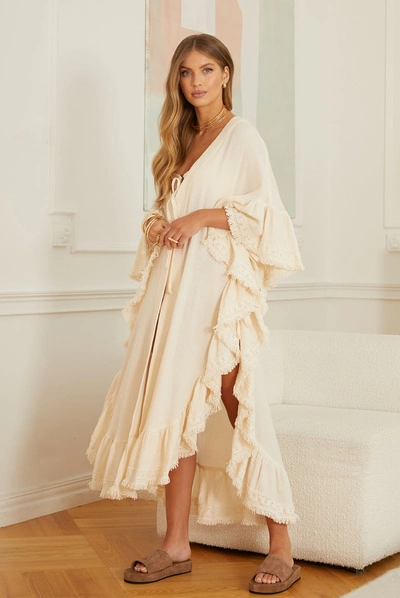 Sheila - Women's cream/ecru cape with ruffles and boho fringes 'Noel'