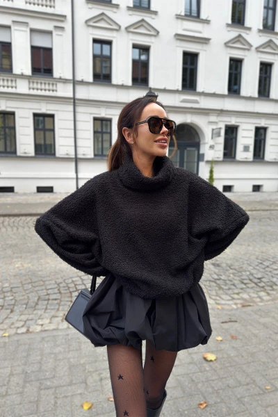 Sheila - Women's turtleneck sweater black/beige 'Huda'