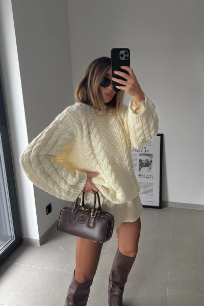 Sheila Select - Damski Sweter kremowy z warkoczami 'Mattia Cream'