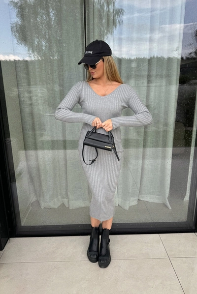 Sheila Select - Women's gray striped fitted dress 'Celine Grey'