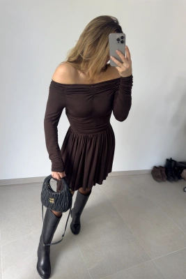 Sheila - Women's Brown Knitted Dress with Ruffles 'Bodega Brown'