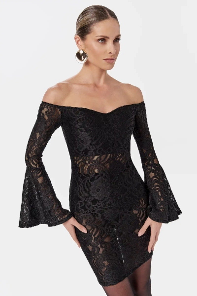 Sheila - Women's Black Knitted Dress with Long Flared Sleeves Mini 'Beatrice'
