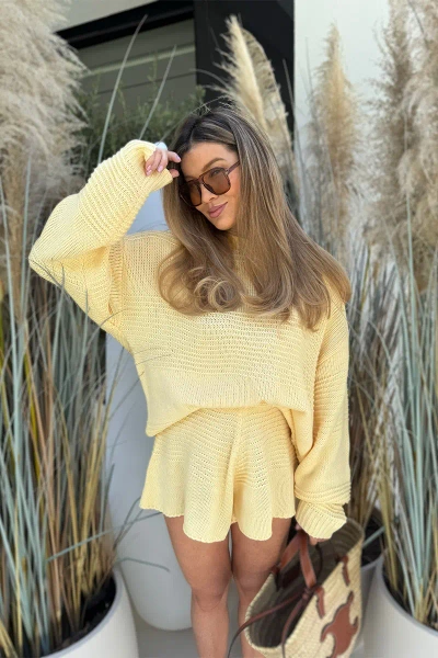 Sheila Select - Women's Yellow Openwork Set with Shorts 'Angela Yellow'