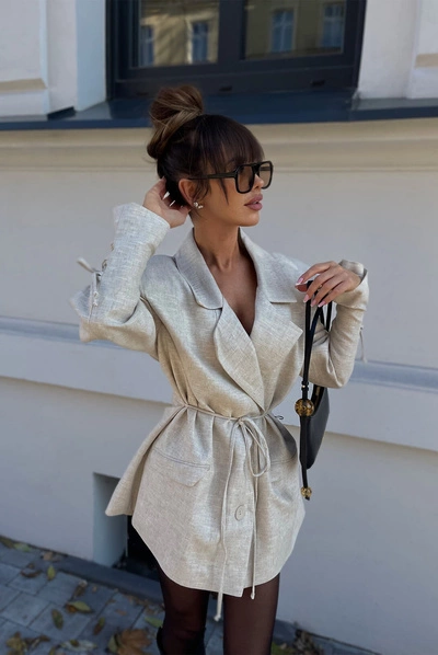 Sheila - Women's beige mini dress with gold embroidered patterns 'Marina'