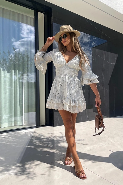 Sheila Select - Women's Beige Openwork Dress with Elastic Waist 'Aphrodite'.