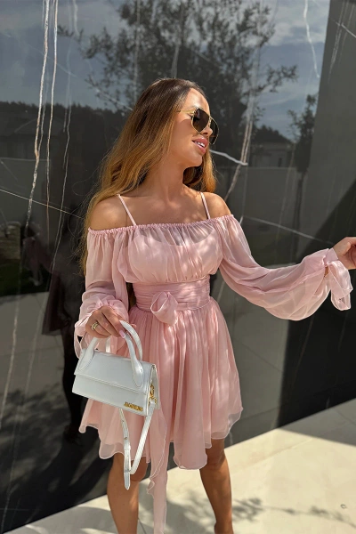 Sheila - Women's 'Bridget' pink/powder dress with transparent mini sleeves