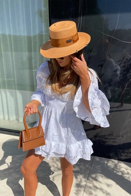 Sheila Select - Women's white openwork dress with elastic waistband 'Aphrodite'