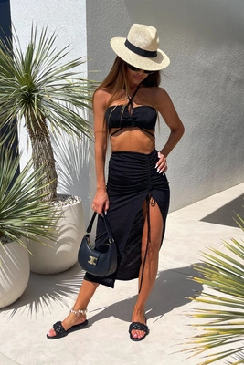Sheila Select - Women's black openwork dress with elastic waist 'Afrodyta Black'