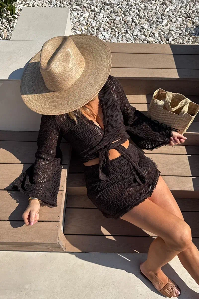 Sheila - Damski Komplet dwuczęściowy brązowy ażurowy ręcznie wykonany boho 'Lagos'