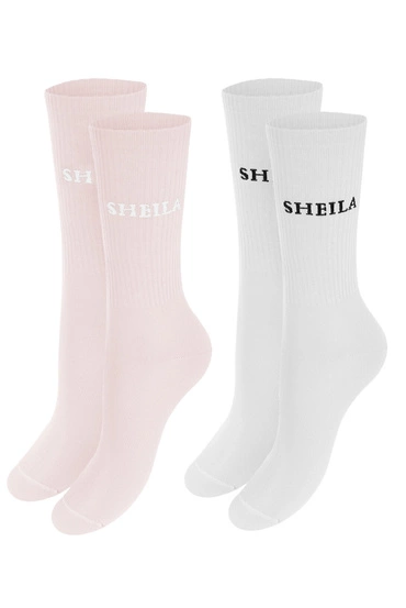 Sheila - Zestaw Skarpet Damskich unisex 2 pak z logo biel i róż