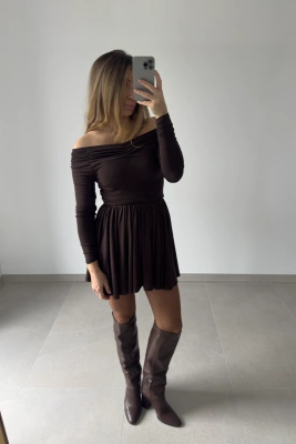Sheila - Damska Sukienka dzianinowa brązowa z marszczeniami 'Bodega Brown'