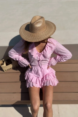 Sheila Select - Damski Komplet różowy ażurowy ze spodenkami 'Angela Pink'