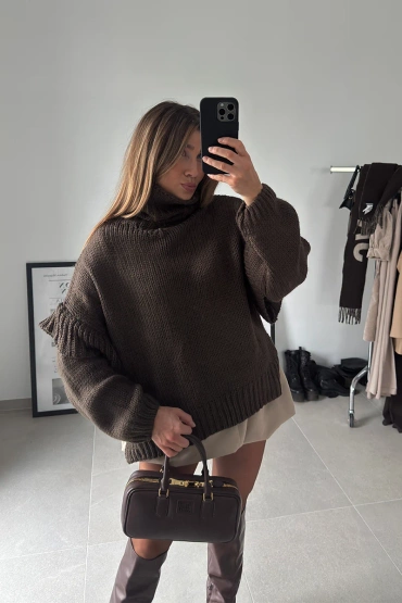 ( ilość produktów: 4 )Sheila Select - Damski Sweter brązowy z golfem 'Tommasso Brown'