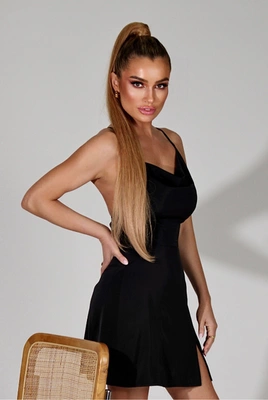 Sheila - Damska Sukienka czarna asymetryczna dopasowana mini 'Sharon'