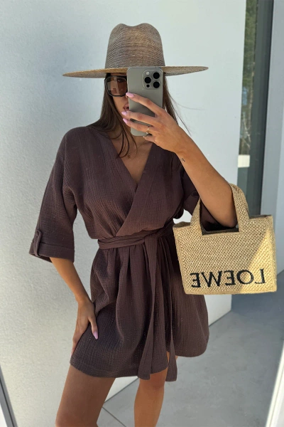 Sheila Select - Damska Sukienka brązowa z guzikami mini 'Charlotte Brown'