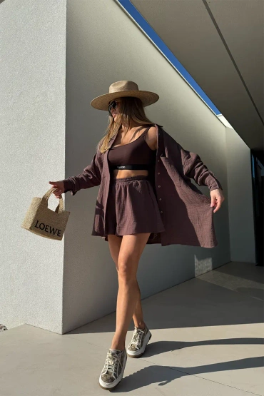 Sheila - Damska Koszula z bawełny brązowa 'Amara Brown'