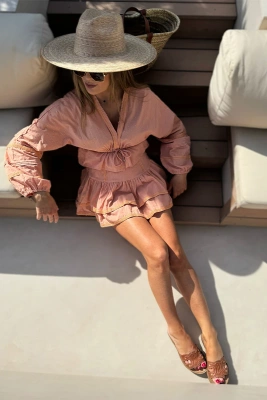 Sheila Select - Damski Komplet różowy ażurowy ze spodenkami 'Angela Pink'