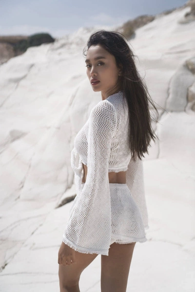 Sheila - Damski Komplet dwuczęściowy biały ażurowy ręcznie wykonany boho ' Jashita'