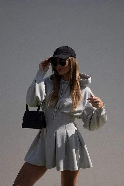 Sheila - Damska Sukienka sportowa szara z kapturem taliowana dresowa 'Dewi'