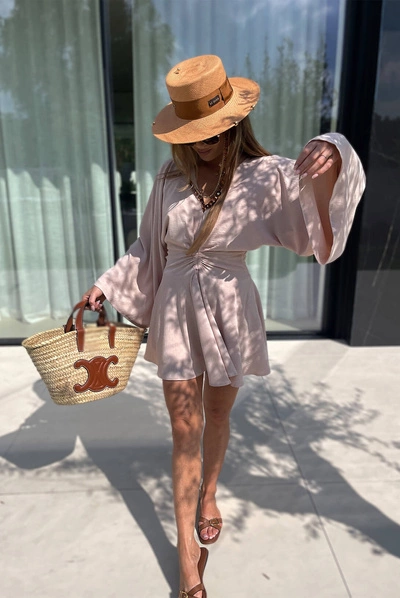 Sheila - Damska Sukienka z dzianiny z efektownym zdobieniem beżowa 'Josefa'