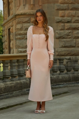 Sheila - Damska Sukienka różowa/fuksja z ozdobnym kwiatem midi 'Thaosa'