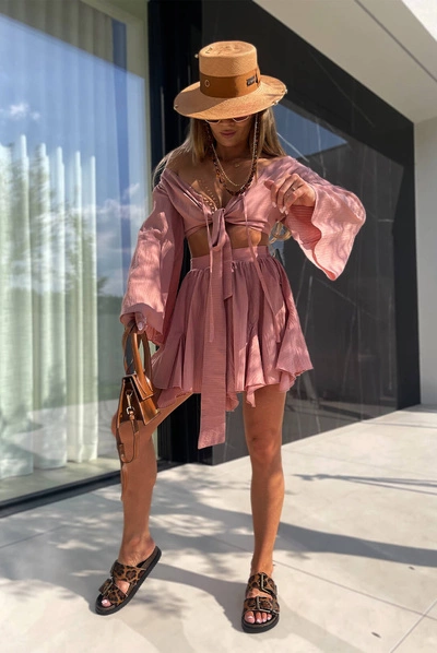 Sheila - Damska Sukienka różowa/pudrowa z wycięciem na brzuchu mini 'Bianca'